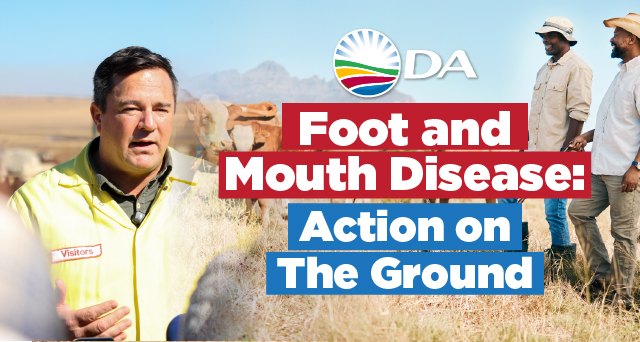 A DA-led national response to protect farmers, jobs and food security South Africa has stepped up its response to Foot-and-Mouth Disease through mass vaccination, stricter movement controls, and stronger enforcement to stop the spread of the disease and protect the agricultural sector. Leadership that acts Under the leadership of DA Federal Leader and Minister of