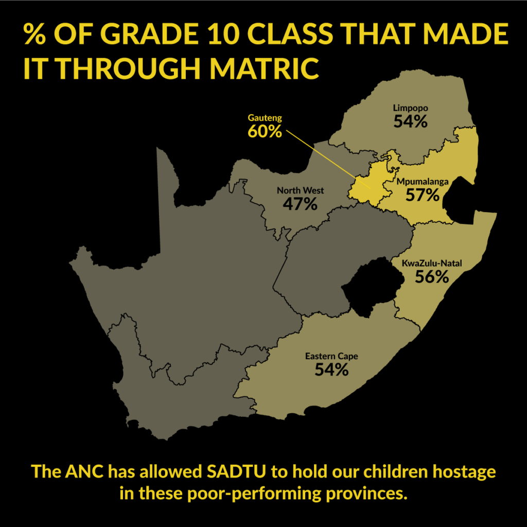- Prioritises children from poor communities; expanding life changing opportunity to especially young, black children, who in other provinces are held hostage by the ANC’s protection of SADTU.