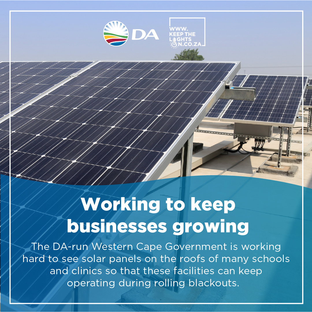 - Offer a R75 000 tax rebate to cover the cost of installing solar systems in homes, to take pressure off the grid.